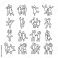 • Happy dancing woman and man couple icons. Disco dance lifestyle vector pictograms