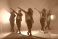 • Young modern dancing group of six adult young people practice dancing on colorful background