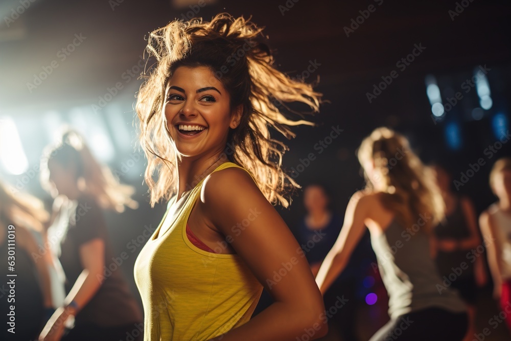 Taniec - beautiful girl at dance aerobics class #630111019