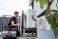 Sport - Technician performing maintenance on outdoor heat pump unit near residential building exterior.... #1974483198