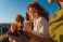 Sport - Diverse friends laughing eating pizza outdoors at sunset #1986746720