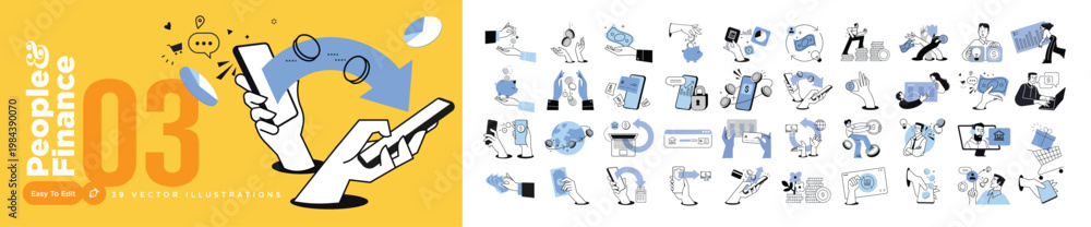 • People and finance. Vector illustrations of people in various financial and banking activities. Concepts for graphic and web design, social media, business and marketing material.