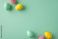 • Happy Easter greeting featuring pastel painted eggs on a mint green background for a fresh spring celebration and seasonal decoration