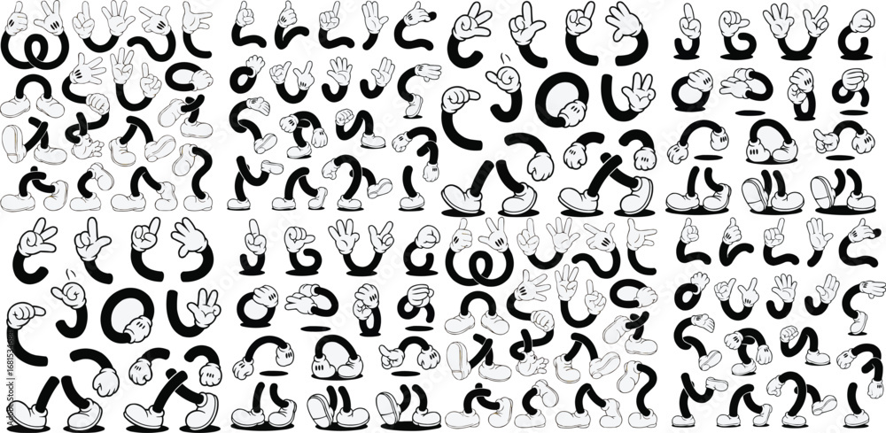 Dla Dzieci - Retro cartoon legs and hands, Hands with gloves and feet with boots, various poses for... #1681534684