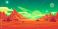 • Mars landscape, alien planet background, red desert surface with mountains, craters, saturn and stars shine on green sky. Martian extraterrestrial computer game backdrop, cartoon vector illustration