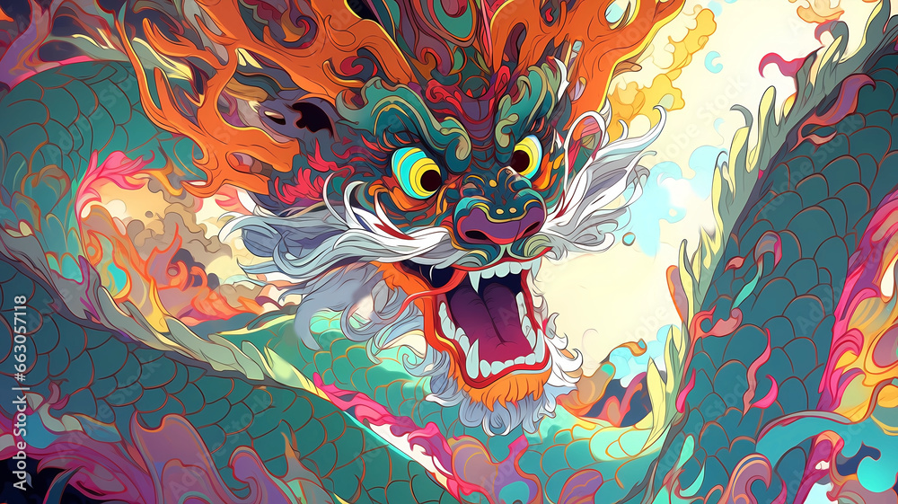Dla Dzieci - Hand drawn cartoon animation chinese dragon illustration #663057118