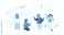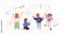 • Kids drawing on wall. Happy creative children group with chalks, crayons decorating wallpaper with pencil doodles, scribbles, sketches, cute art. Flat vector illustration isolated on white background