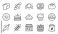 • Collection of minimalist black outline icons for a bakery, including bread, pastries, cakes, donuts, and baking equipment like a rolling pin and flour sack