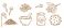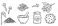 • Hand-drawn clove spice illustration set showing whole and ground cloves, a mortar and pestle, a pomander, and a jar in a simple black and white line art sketch style