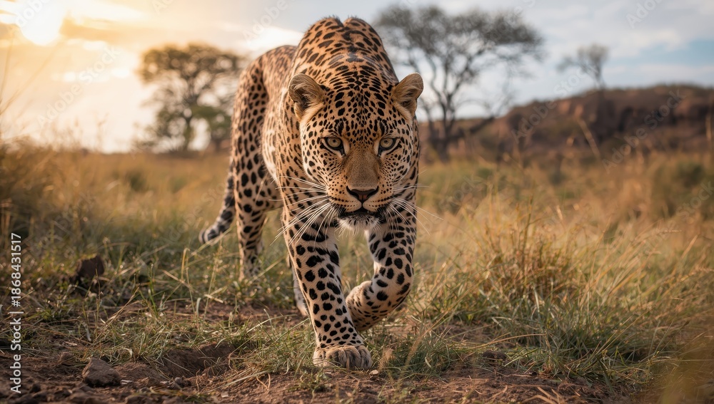 Krajobraz wiejski - Leopard in African savanna #1868431517