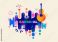 • Colorful carnival and music festival poster and banner with abstract musical instruments