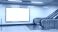 • Clean, bright subway platform with a large blank advertisement and escalator