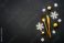 • Christmas table setting with plate, cutlery and christmas decorations on white background.