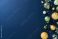 • Elegant Christmas ornaments along the right border on a deep navy blue background.