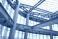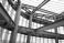• Interior view of modern steel structure building with exposed beams and columns