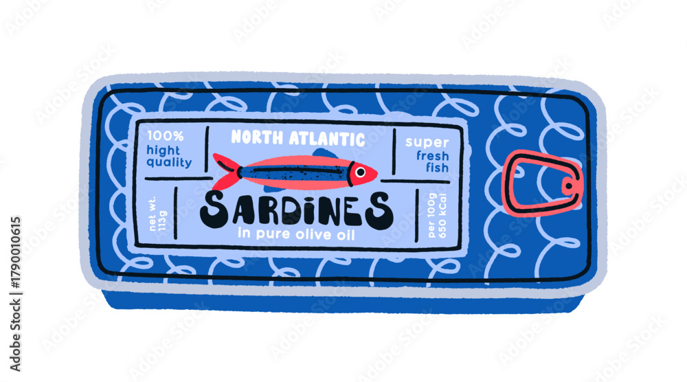 Pustynia - Sardines can in doodle retro style. Sealed metal packaging with preserved Mediterranean seafood.... #1790010615