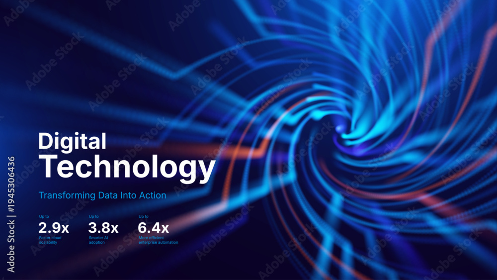Pustynia - Tech Data Flow Visualization Featuring Optic Fiber Streams and Neural Network Links. Backdrop for... #1945306436