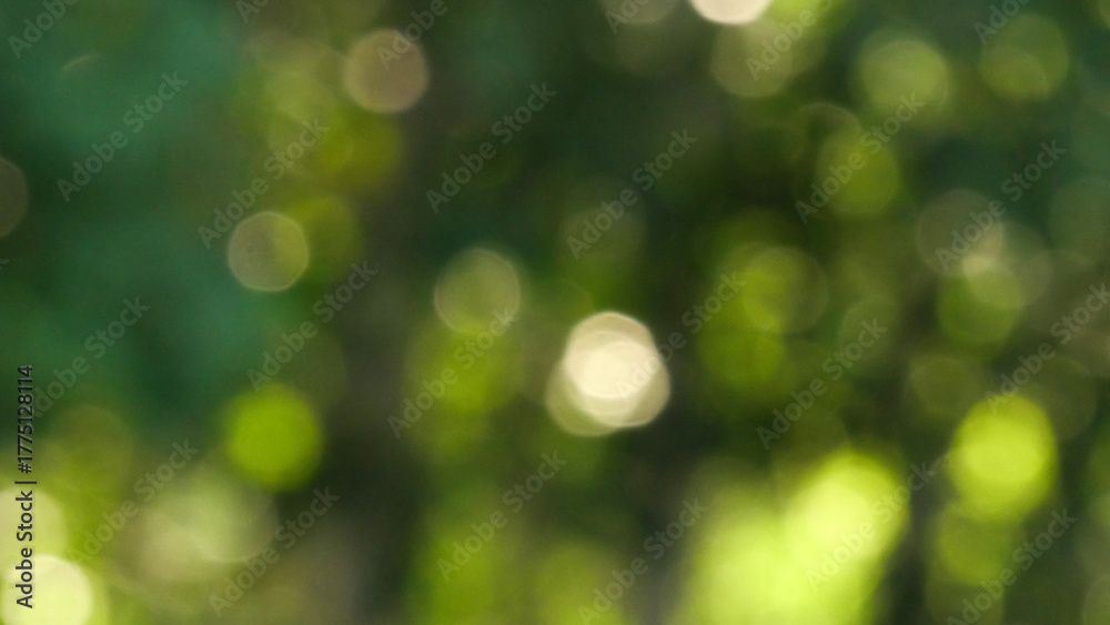 • Beautiful abstract green nature background with natural sunlight bokeh, creating a fresh and blurry backdrop for spring or summer themes.