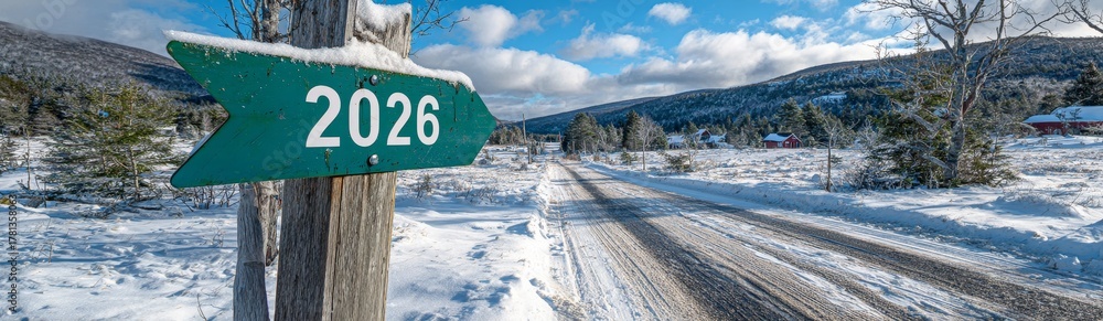 Miasto - sign with the year 2026 in a snowy landscape #1781358063