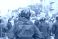 • Riot police in winter city street protest, crowd control and public demonstration security
