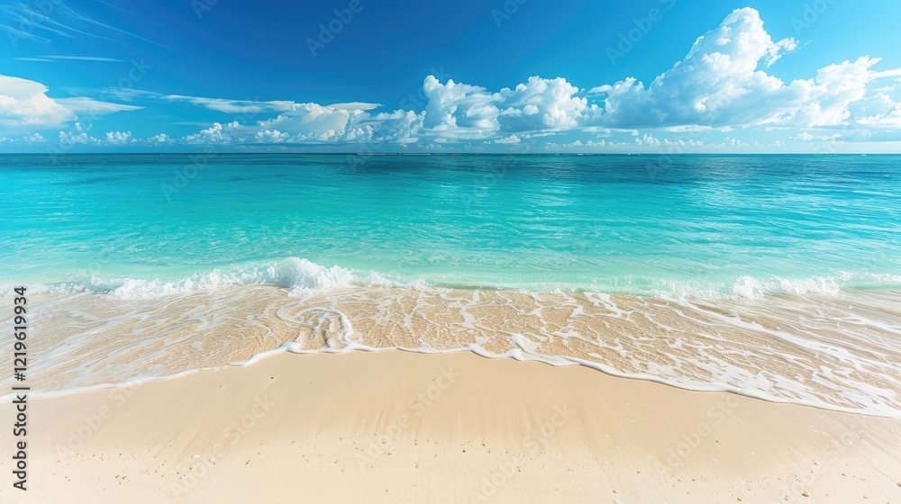 Plaża - beautiful tropical beach banner, empty beach with white golden sand and blue torquoise sea #1219619934
