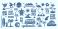 • A tropical beach and surf-themed vector set with palm trees, waves, surfboards, a van, flamingos, and ocean elements with quotes, in a bold graphic style. Perfect for t-shirt prints, posters, stickers