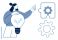 Woda - Woman with light bulb symbolizing eco-ideas gestures towards interconnected gear puzzle piece.... #1731283447