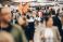 • Abstract blurred people at exhibition hall of expo event trade show. Business convention show or job fair. Business concept background