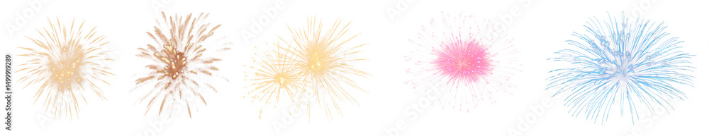 Przestrzeń - PNG Colorful festive fireworks display, element set on transparent background #1499919289