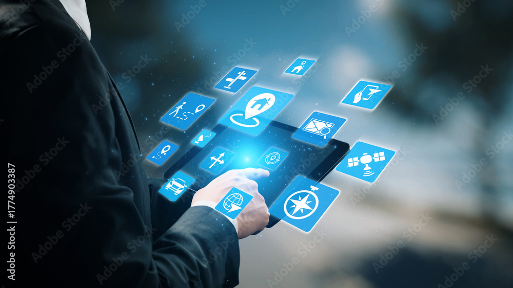 • GPS icons show navigation, GPS tracking, and location. GPS supports real time maps, direction, and GPS navigation services for mobility and transport. Gist