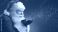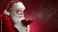 • Man dressed as Santa Claus blowing snow from his hands against a vibrant red background.