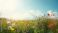 • Sunlit spring meadow with flowering plants and blue sky, suited for seasonal backgrounds and editorial headers, World Earth Day