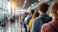 Przestrzeń - Crowded airport terminal long queue passport control checkpoint travelers standing line waiting... #1865450733