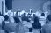Kształty - Audience watches panel discussion on stage with blue backdrop and seated experts sharing insights #1721895910