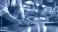 Kształty - Professional chef wearing blue nitrile gloves meticulously cleaning and sanitizing gleaming... #1903912709