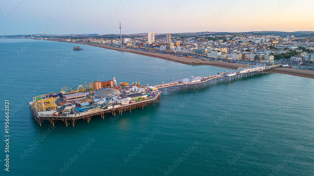 Retro - Sunrise view of Brighton palace pier in England #1956662821