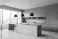 Retro - Modern minimalist kitchen interior with wood cabinetry, large windows, sleek island, pendant... #1980659770