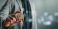 • Hand holding wooden house model with quality checklist and approval icons, real estate investment and property evaluation concept, home insurance, mortgage approval and housing security assurance