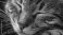 • Close-up black and white photo of a sleeping tabby cat