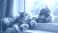 Two fluffy felines relax on a windowsill bathed in warm sunlight. One cat looks upwards, while the other rests, showcasing textures. The blurred background hints at a peaceful day od 0,00 zł Dopasuj i kup Plakat