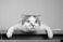 • Close up Scottish fold cat head with shocking face and wide open eyes. Frighten or surprised cat when look at something. Shock or surprise animal concept.