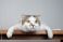 Koty - Close up Scottish fold cat head with shocking face and wide open eyes. Frighten or surprised cat... #438922163