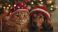 • Festive pets together, a cat and a dog wearing Christmas hats, celebrating the holiday season with warmth and joy.