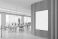 Zwierzęta - Modern office interior with vertical wood slat wall and blank poster mockup in open workspace... #1717353728