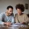 • Happy couple reviewing documents together at home. Represents partnership, finance, or shared goals. Perfect for illustrating financial planning, relationships, or family life.