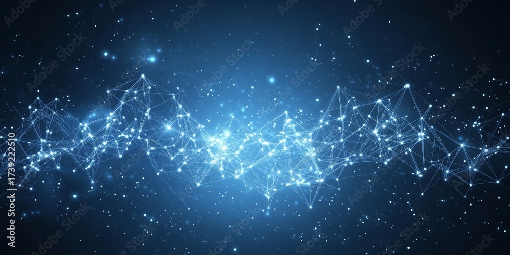 Zwierzęta - Intricate Vector Connection Blue Dots Network Structure on Deep Background with Light Effects #1739222510