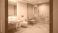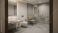 • Medium shot of a spacious hotel bathroom designed for accessibility featuring a zerothreshold shower and strategically placed fixtures.