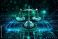 • Scales of justice representing legal balance in a futuristic digital environment