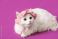 Zwierzęta - Cute white cat in funny pink hat on purple background #1900686460
