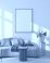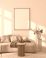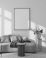 • Modern Living Room Poster Frame Mockup with Natural Light and Minimalist Decoration. 3D render.